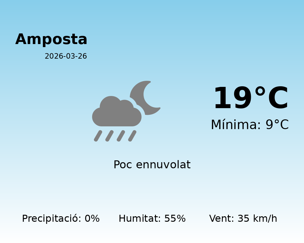 Avui, 26 de març de 2026, Amposta gaudirà d’un dia amb condicions meteorològiques agradables i clares. Aquesta previsió us ajudarà a planificar les vostres activitats a l’aire lliure amb total tranquil·litat.